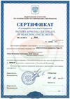 Certificate given by Federal Agency on Technical Regulating and Metrology states that based on satisfactory results ultrasonic flaw detectors USLT 2000 SP3, USLT 2000 IP-3, USLT 2000 DP-3 are registered in State Register of Measurement Devices under № 37143-08 and allowed for use in the Russian Federation.